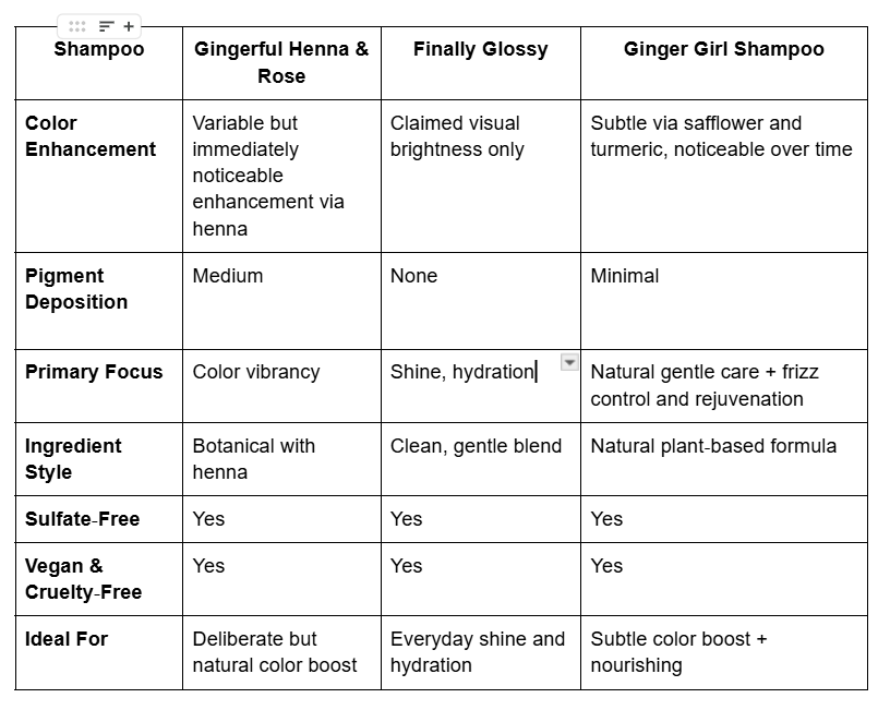 Below we compare Ginger Girl against the other standout shampoos that are popular with natural redheads: